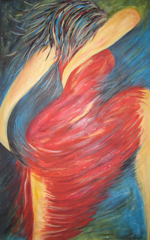 SPIRIT DANCER • 36" x 48" • Acrylic, Silk paint, Collage on Canvas • SOLD