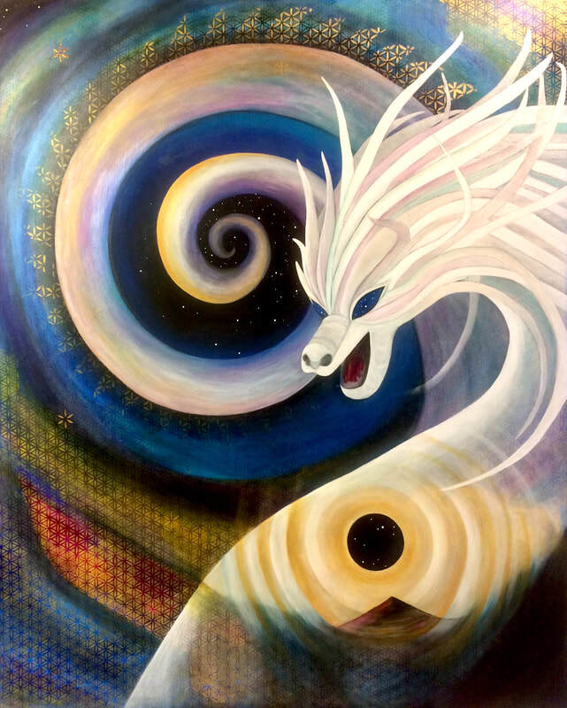 COSMIC TRINITY • 60" x 48" • Acrylic, silk paint and holographic vinyl on canvas • SOLD