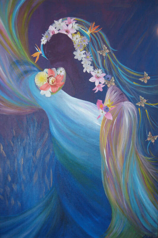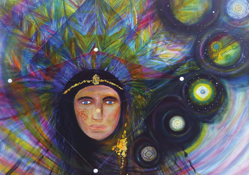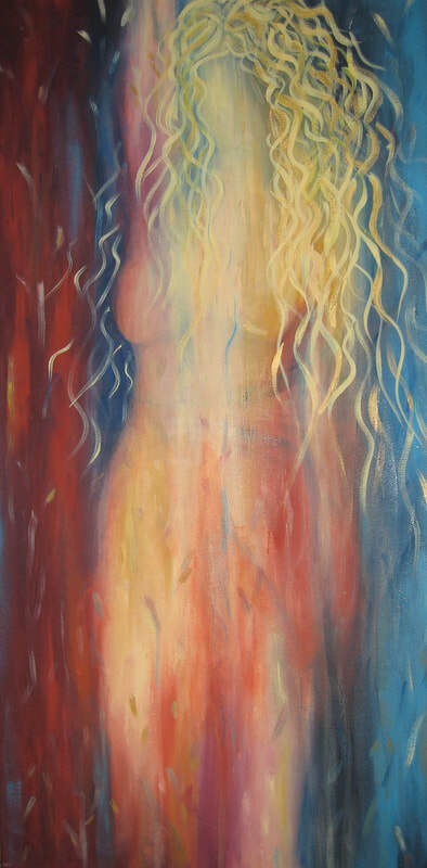 LEMURIAN PRIESTESS • 36" x 48" • Acrylic, Silk paint, Collage on Canvas • SOLD