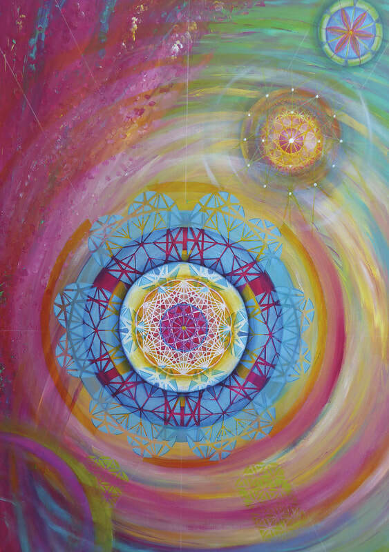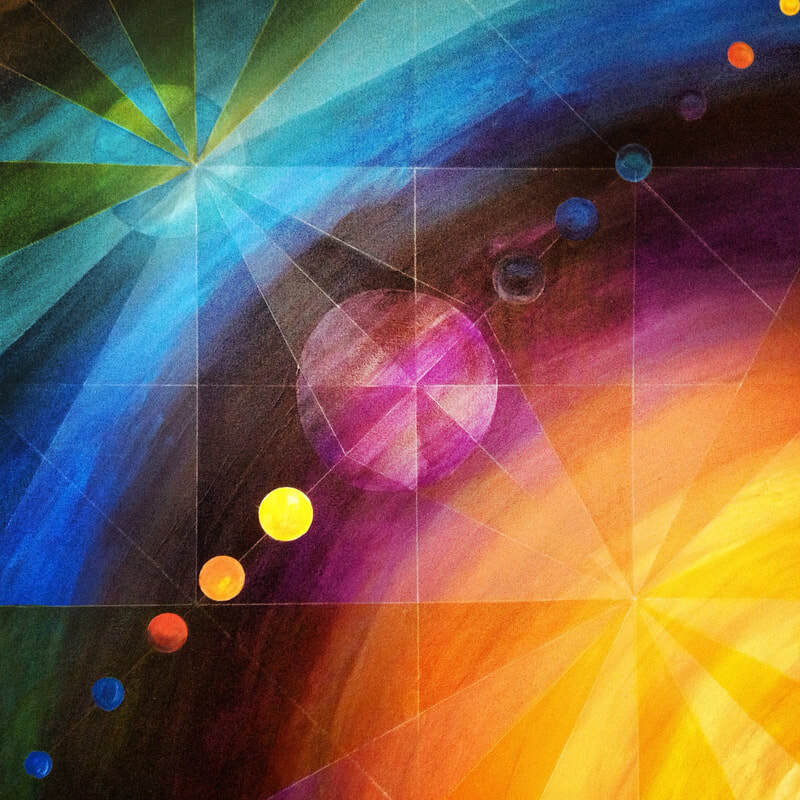 GALACTIC ORBS • 24" x 24" • Acrylic, silk paint on Canvas • SOLD