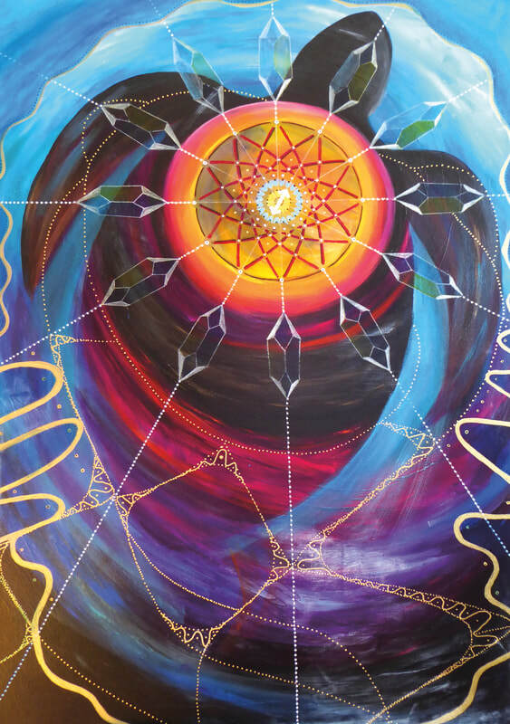 SOVEREIGN TURTLE • 30" x 40" • Acrylic, Silk paint, Collage on Canvas • SOLD