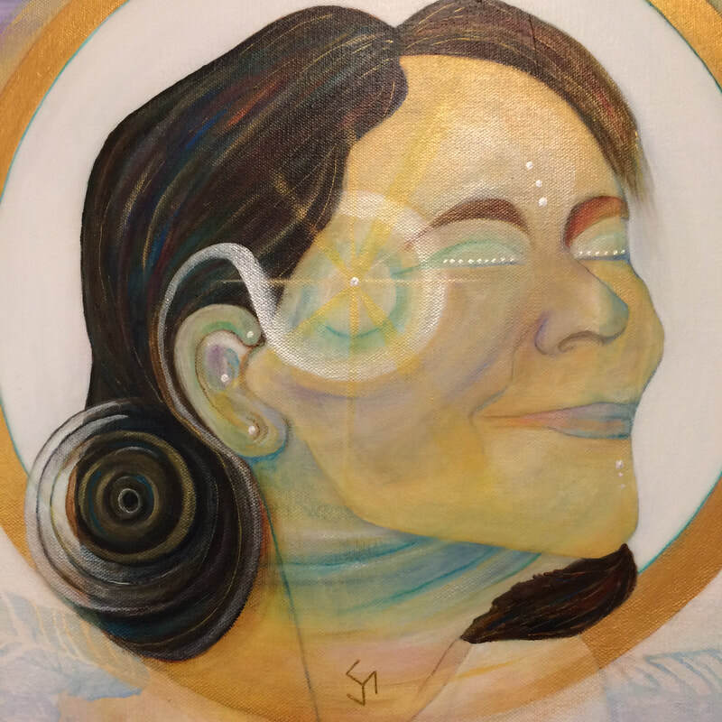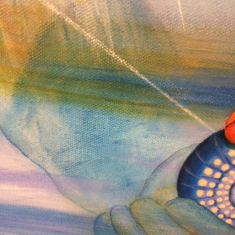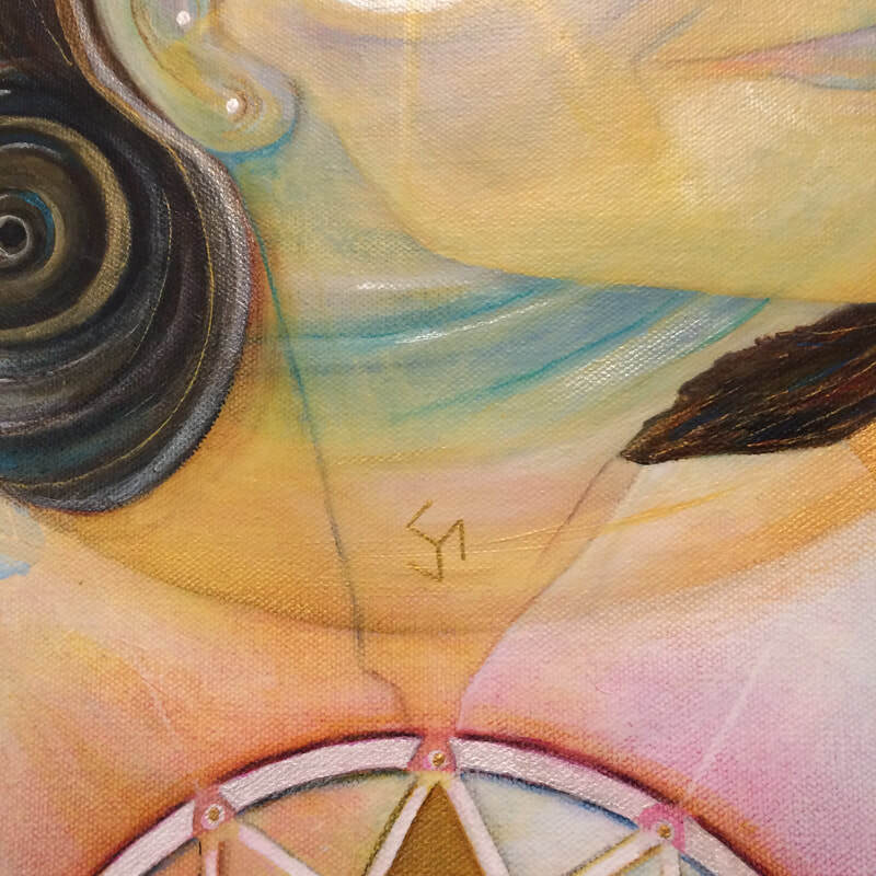 I created this painting for Cat Parenti. She desired to bring in her future partner and commissioned me to paint him into fruition. I asked for a list of her desires. I printed it out, attached it to the back of the painting. Just before I started the painting, a song that came to me entitled "Paloma Blanca".
